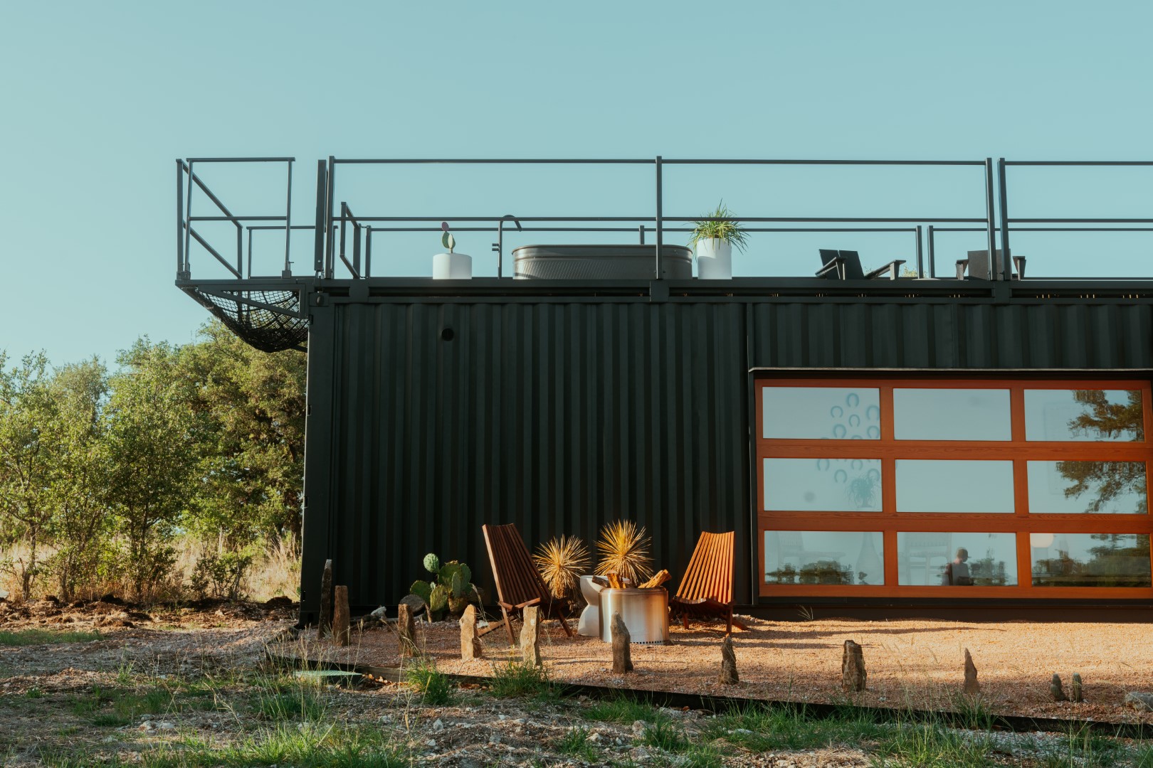 “The Porter” is a wonderful addition to our premier line. This luxury shipping container home features all the bells and whistles, including a relaxing hammock, rooftop deck, cowboy hot tub, and more.